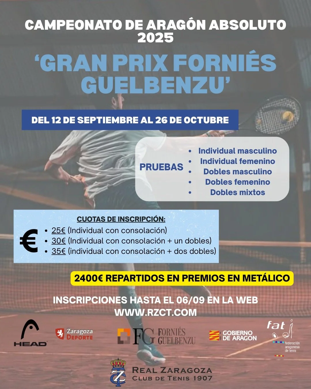 Campeonato de Aragón Absoluto 25 FORNIÉS GUELBENZU BASES del Campeonato Cuadro MASCULINO FASE FINAL Cuadro FEMENINO Cuadro MASCULINO FASE PREVIA finalizado Cuadro MASCULINO FASE PRE-PREVIA finalizado Cuadro DOBLES MASCULINO FASE FINAL Cuadro DOBLES FEMENINO Cuadro DOBLES MASCULINO FASE PREVIA finalizado Cuadro DOBLES MIXTO Listas de entrada Cuadros
